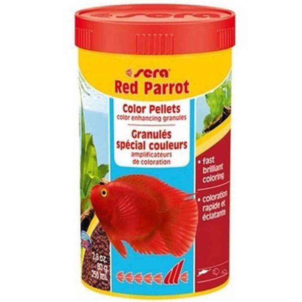 סרה התוכי האדום – מזון מגורען בסיסי, מזון צף המיועד לדגי תוכי. מכיל רכיבים מן הצומח ומזון מן החי, עם פיגמנט לחיזוק צבעו של הדג.